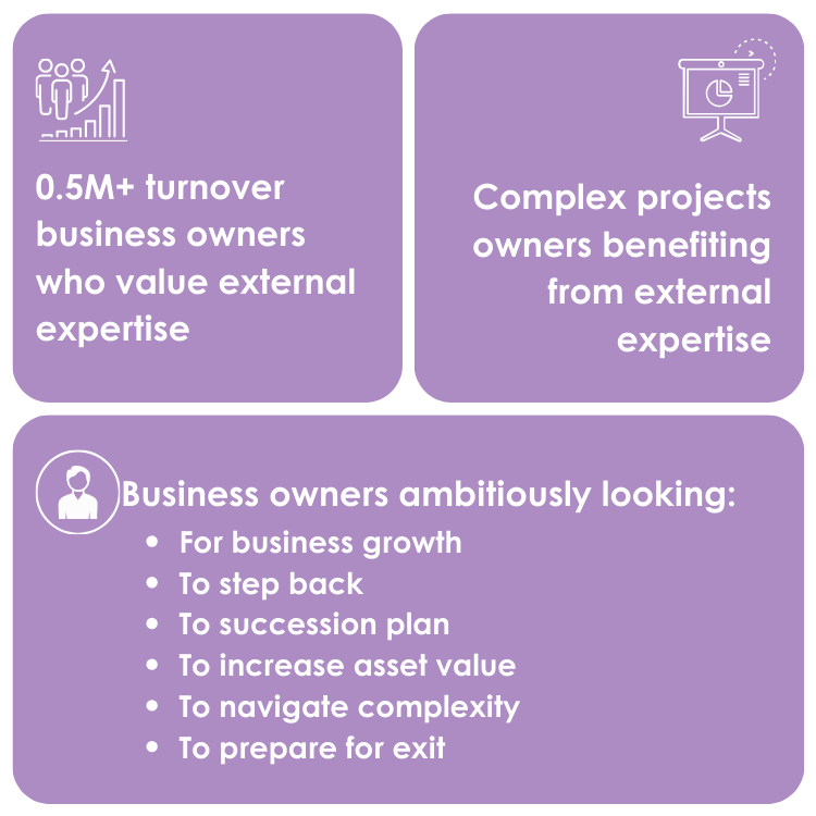 Small to medium businesses will often start their advisory journey with an independent chair or peer advisory group, serving as a sounding board.